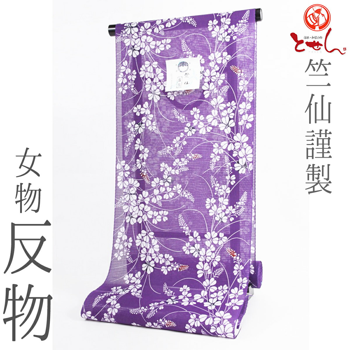 呉服屋 新柄 竺仙鑑製 女物浴衣 反物 紫×白 綿100% 生地 紅梅小紋 レディース 婦人物 ブランド メール便不可 送料無料 レトロ 和柄 古典柄 安い 耳あり 送料込み