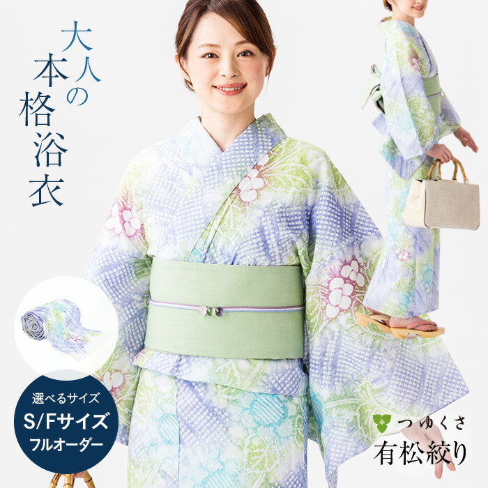 浴衣 有松絞り レディース 2020 彩花 花柄 紫 グリーン ピンク 鹿の子絞り 小帽子絞り |有松 鳴海 絞り 浴衣 洗える 着物 単衣・夏着物にも 綿100%|送料無料〔単品〕【お仕立て代込】【フルオーダー/S/M〜L(フリーサイズ)】