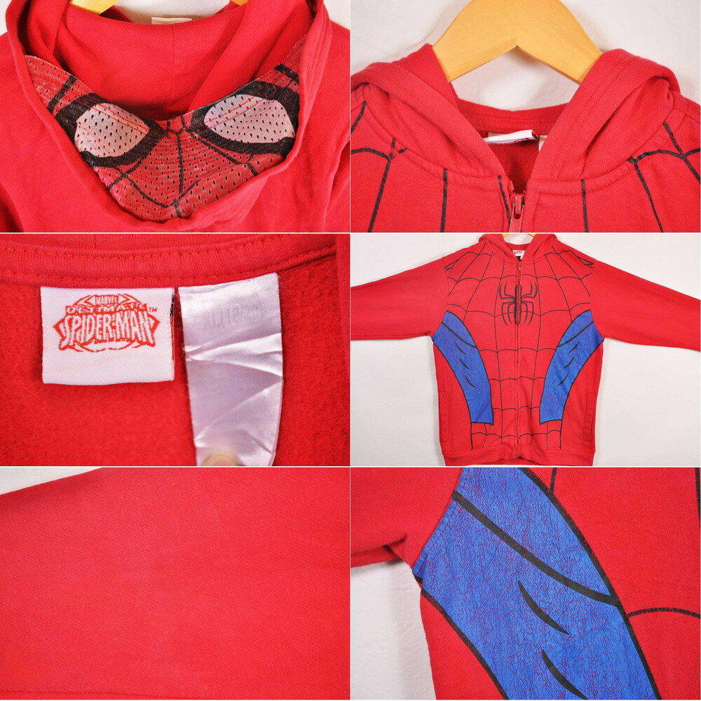 ■商品説明 コスプレスタイルがポイントです!USA古着「MARVEL COMICS」フルジップスウェットパーカです!レッドベースにスパイダーマンのなりきりコスプレスタイルの騙し絵プリントやフードのメッシュアイカバーなどがとてもポップですのでコーディネートのポイントとして大活躍してくれます!なかなか目にしない1枚ですので本当にお勧めです! ■状態 USEDグレード[B] 1. ボディ:洗濯等による色あせ・縫い合わせ部などのスレ・プリントのクラックやハゲなど多数・全体的な毛玉や毛羽・右前腕部の部分的な薄っすらとした色抜けや薄いシミ汚れ・薄い汚れ・細かい汚れ・細かい生地キズなどあり ※USED商品ですのでそれなりの使用感があります。