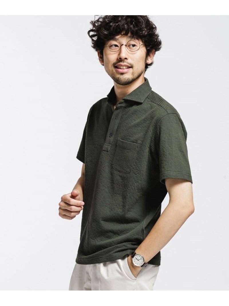 nano・universe(ナノユニバース)カットサッカーカッタウェイポロシャツ/半袖かっちりとした見え方のカットソー生地を使用した着心地抜群の半袖ポロシャツ。